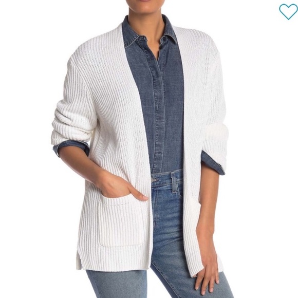 Madewell Dolan Ribbed Cardigan Solid white, pockets 100% Cotton Excellent condition