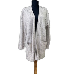 Madewell Wool Blend knobby Knit Sweater Open Cardigan Oversized Size L speckled gray Pockets
