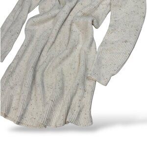 Soft and warm knit sweater dress with speckled detailing, offering a cozy yet stylish choice for cooler weather. Ribbed texture enhances its classic charm.