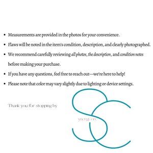 Please see photos for measurements & detailed conditions. Any flaws will be noted and flagged.