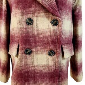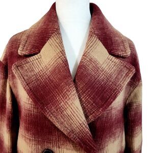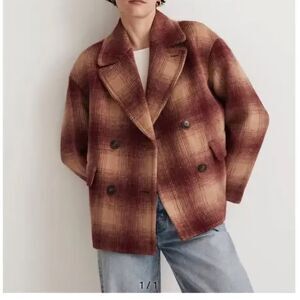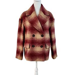 Madewell Dorinda Plaid Coat Red Tan Wool Blend Double Breasted Women's Small NWT