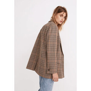 Madewell Dorset Blazer in Coster Plaid Brown Check Oversized Jacket Size XL