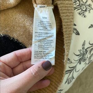 Soft tan sweater with bold black accents. Perfect for cozy style.