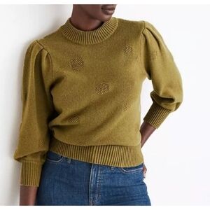 Dotted Eaton Puff-Sleeve Pullover Sweater in Cotton-Merino Yarn