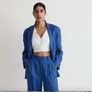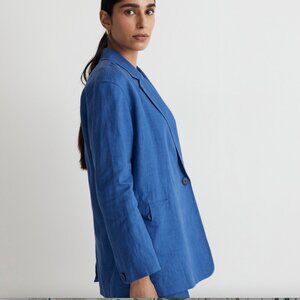 Madewell Double-Breasted Crossover Blazer 100% Linen Size Small, Bluestone