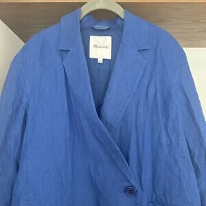 Size XS Madewell Double-Breasted Crossover Blazer in 100% Linen in Bluestone. New without Tags. MSRP: $158