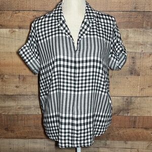 Double-Faced Hayden Popover Top in Breeney Plaid size small. Pre-loved condition. Made of double-faced gauzy cotton, this camp-collar popover top is drop-it-on-and-go easy. With cute cuffed sleeves (to show off the polka dots inside) and a pleated back, it's a total breeze with shorts, slouchy jeans or wide-leg pants.