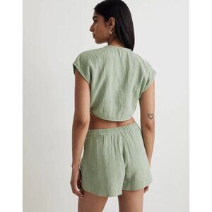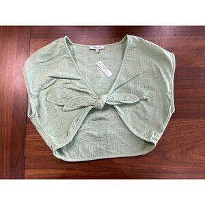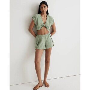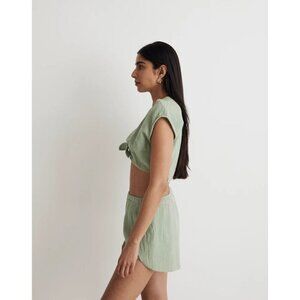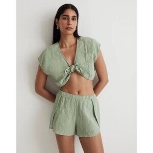 Madewell Double-Gauze Tie-Front Cropped Top in Gatehouse Green XSmall New Womens
