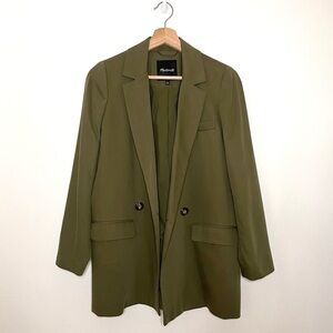 Madewell Drapeweave Caldwell Double Breasted Blazer Jacket Kale Green XS