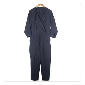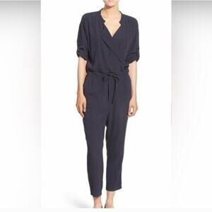 Madewell Drapey Crepe Navy Blue Jumpsuit in excellent condition. Wrap front neckline, figure cinching tie waist and laid back roll tab sleeves. Cropped hem. Hidden front snap closure, drawstring waist. Front stash pockets, back welt pockets, unlined.