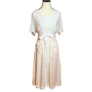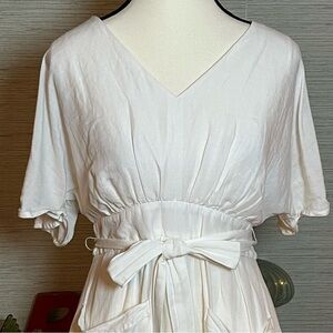 Madewell Dress Linen Blend White Ivory Dolman Sleeve Tie Waist Size PS Petite
