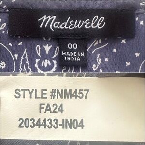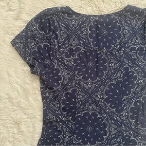 Madewell Dress Shirred Button-Front Mini Bandana Print Nighttime Blue Sz 00