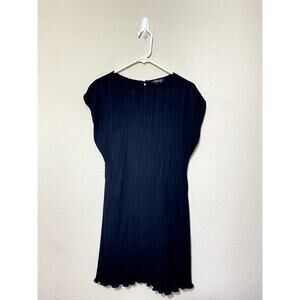Madewell Dress Size 4 Black Plissé Mini Tee Sheath Minimalist Preppy Party NWT