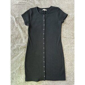 Madewell Dress Size M Button Front Ribbed Knit Mini Black Cotton Blend