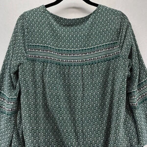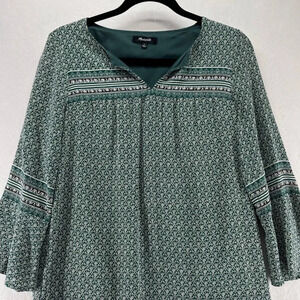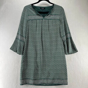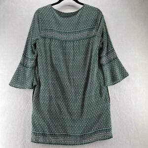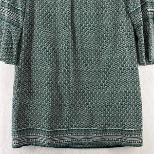 Madewell Dress Sz S Starland Boho Shift Printed Split Neck 3/4 Sleeve Silk Green