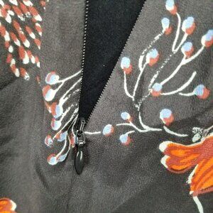 Madewell Dress Womens 0 Navy Blue Floral 100% Silk Ruffle Waist V Neck