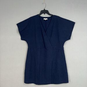 Madewell Dress Womens 2X Navy Blue Cross Front Flutter Sleeve Mini Minimal
