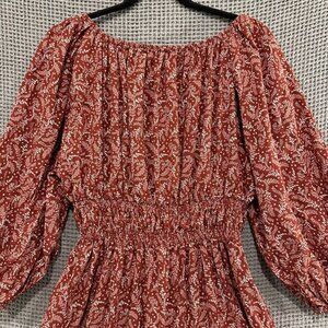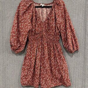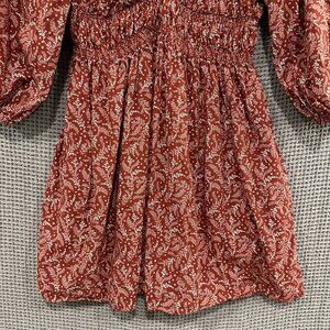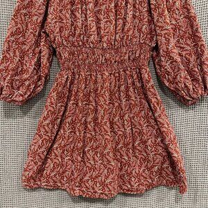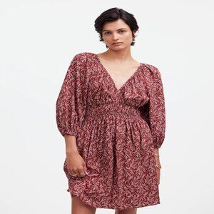 Madewell Dress Womens 6 Burgundy Paisley V-Neck Smocked Waist Long Sleeve Mini