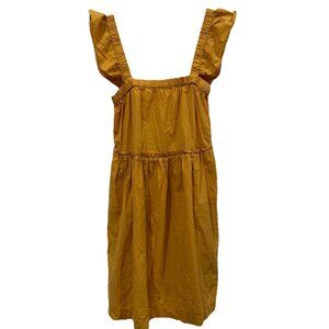 This Madewell dress in size 2XS features a vibrant yellow color with a square neckline and flutter sleeves, giving it a stylish and flattering look. Made from cotton, this mini dress is perfect for a vacation or a casual day out. The metal-themed design adds a unique touch to the overall aesthetic, making it a trendy and comfortable choice for any occasion.