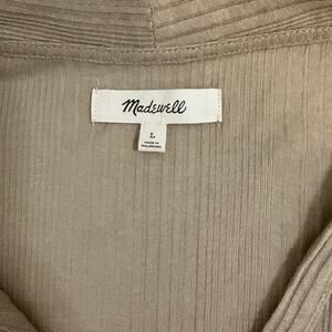 Madewell Drill Khaki Ribbed Button-Up Long Sleeve Collared Top Shirt - Large