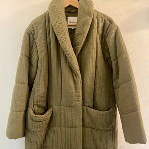 Ultra-comfy quilted gauze coat just in time for the temps to drop. Worn twice.