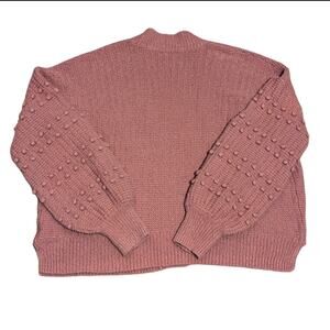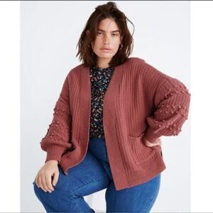 Madewell Dusty Pink Knit Balloon Bobble Sleeve Open Front Cardigan Sweater