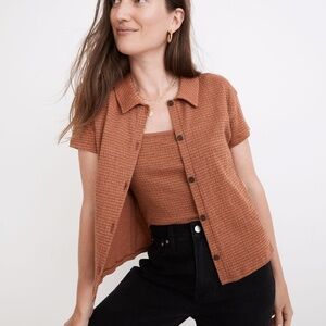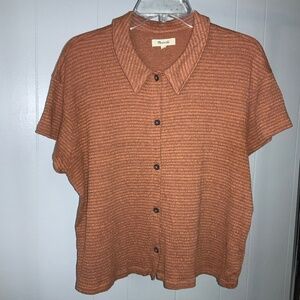 Madewell Earthen Red knit textured button front shirt Sz L cotton blend stretch