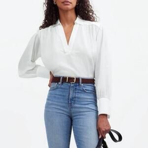 Madewell Easy Long-Sleeve Popover Shirt Eyelet White Size Small NWT