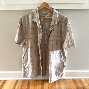 Madewell Easy Short-Sleeve Shirt in Stripe Cream Button Front Size Large. Designed to be worn untucked, this slightly oversized short-sleeve shirt has a relaxed fit that's just so, well, easy. This windowpane striped cotton version is perfect for doing that laid-back-yet-put-together thing.