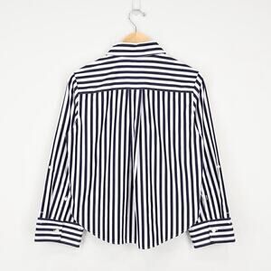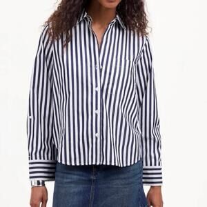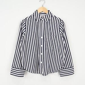 Madewell Easy V-Neck Button Up Shirt Dark Midnight Stripe Size XXS NWT
