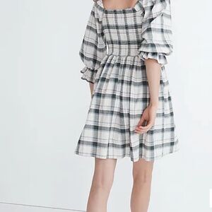 Madewell Elbow-Sleeve Smocked Dress in Lebaum Plaid NWOT