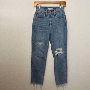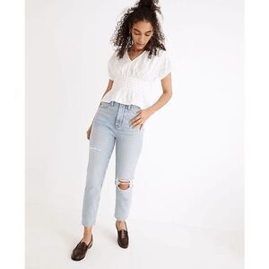 Madewell Ellendale Blue Denim Distressed The Mom Jean Women's Size 24P Petite