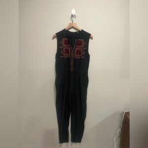 NWOT Madewell Embroidered Silk Folkway Jumpsuit Black size 6