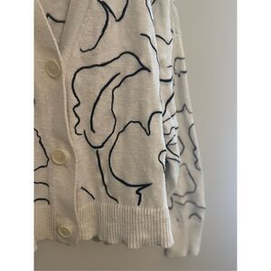 Madewell Embroidered Button Cardigan Sweater -Medium- white and Navy LIKE NEW