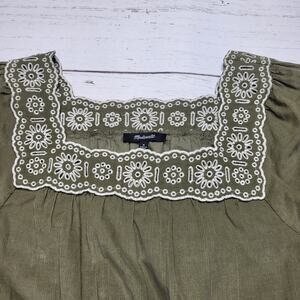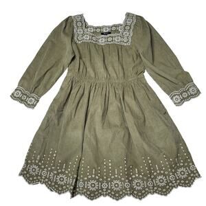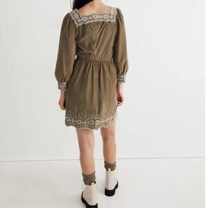 Madewell Embroidered Corduroy Square Neck Mini Dress Green Floral Cotton Medium