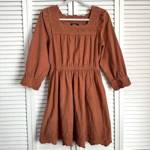 Madewell Embroidered Corduroy Square Neck Relaxed Fit Fall Dress Size XXS