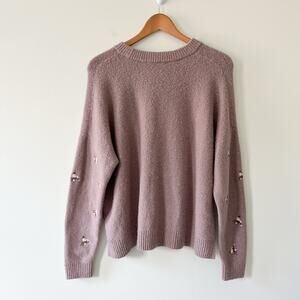 Madewell Embroidered Cross Stitch Floral Pullover Purple Pink Sweater, Medium
