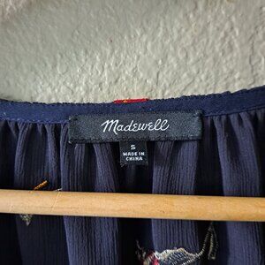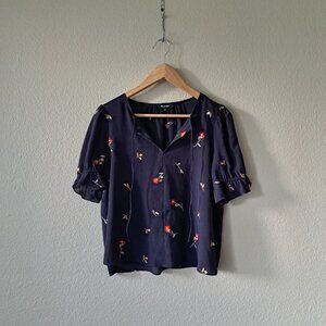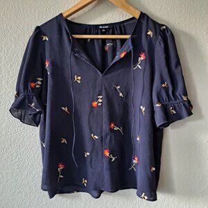 🩵Madewell Embroidered Floral Navy Women's Top Size Small