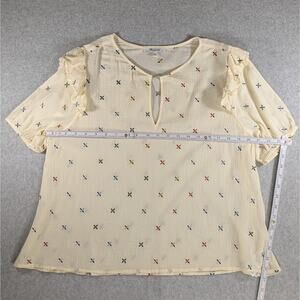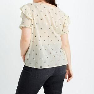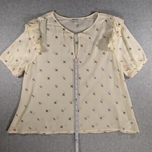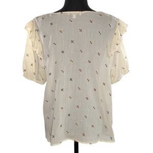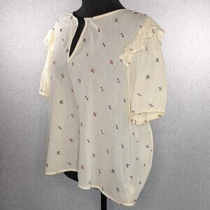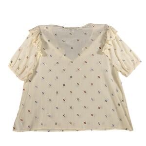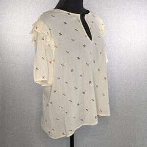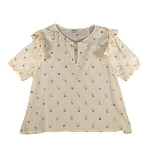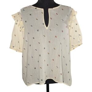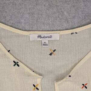 Madewell Gazebo Top XL Cream Embroidered Multicolor Notch Neck Short Sleeve