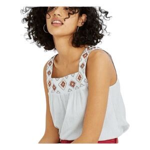 Madewell Embroidered Island Striped Top Blue White Sleeveless Square Neck S