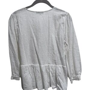 Madewell Embroidered Ivory/Off-White Eyelet Puff Sleeve Peplum Wrap Top Size M