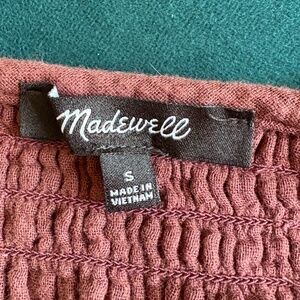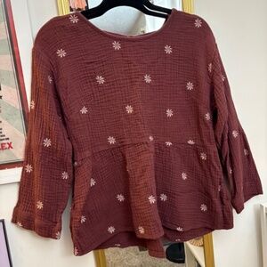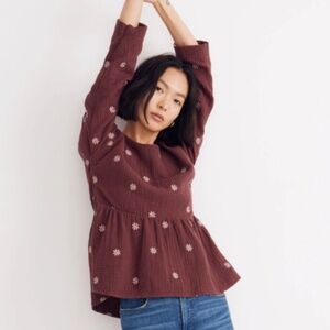 Madewell Embroidered Lightspun Peplum Open-Back Top, size S, Vintage Mulberry. Very lightweight, gauzy 100% cotton.