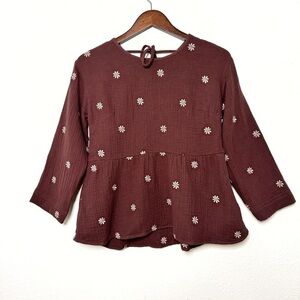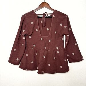 Madewell Embroidered Lightspun Peplum Open-Back Top size XS NWT $88