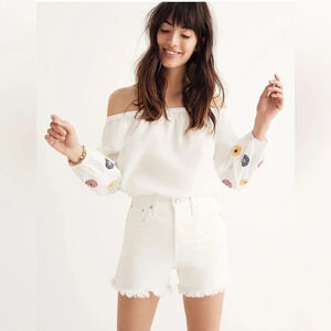 Madewell Embroidered Off-the-Shoulder Top in White Chalk, Women’s Size XS ~ New without tags.
