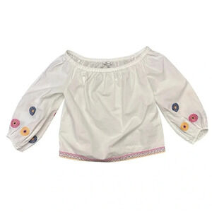 Madewell Embroidered Off-the-Shoulder White Top Floral Boho Crop Relaxed Fit