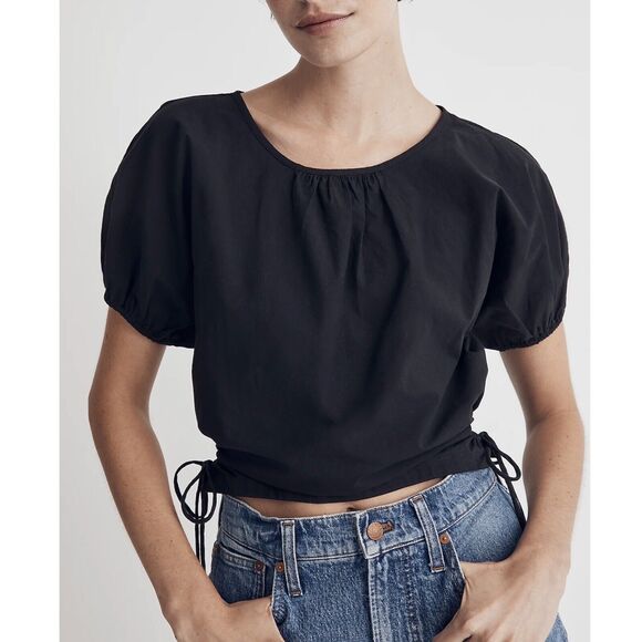 Madewell Embroidered Poplin Puff-Sleeve Cutout Crop Top Size XL New with Tags