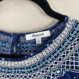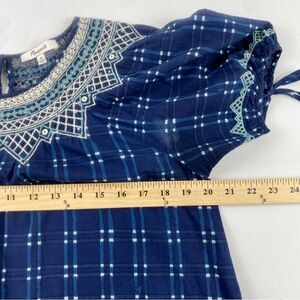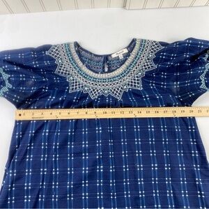 Madewell Embroidered Puff-Sleeve Babydoll Dress in Indigo Plaid Size XS