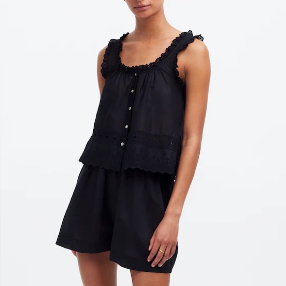 Madewell Embroidered Ruffle-Trim Top