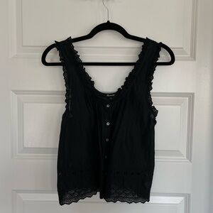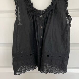 Experience comfort and style with this elegant black sleeveless embroidery top.