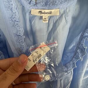 Madewell Embroidered Ruffle-Trim Top Sz XL Periwinkle Blue Button-Up Scoop Neck